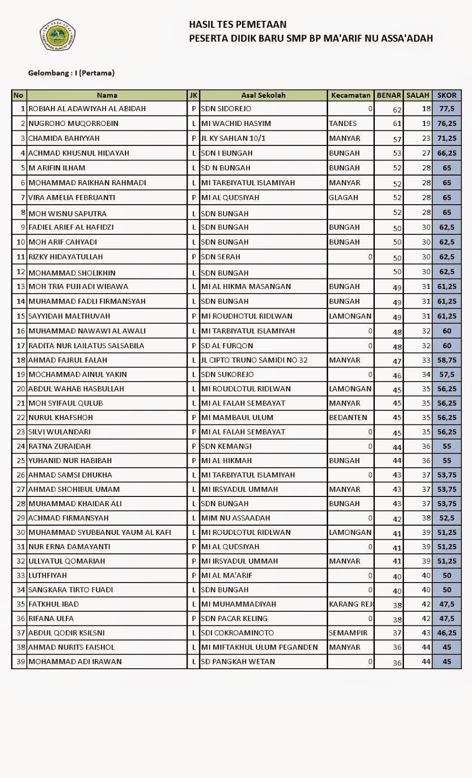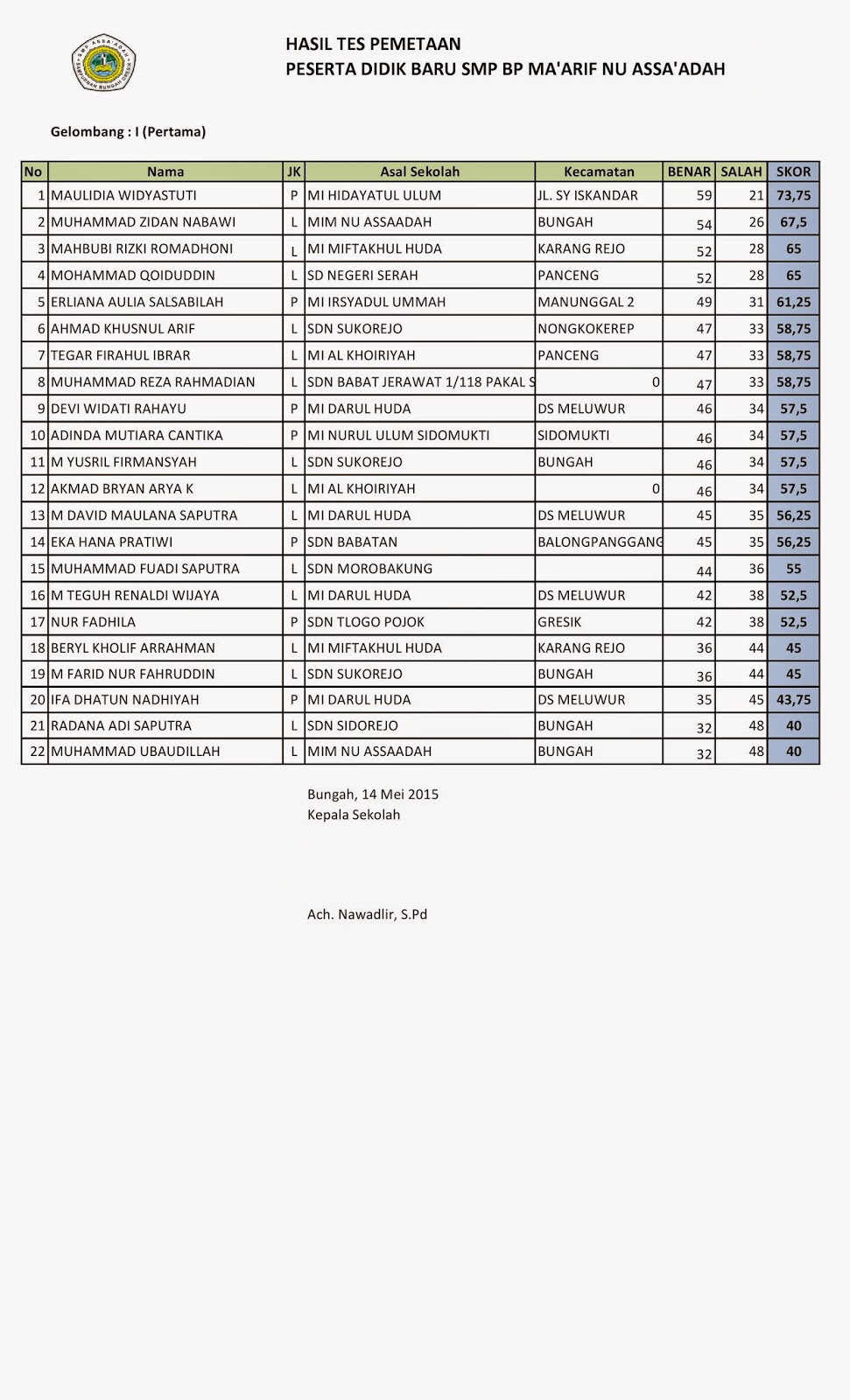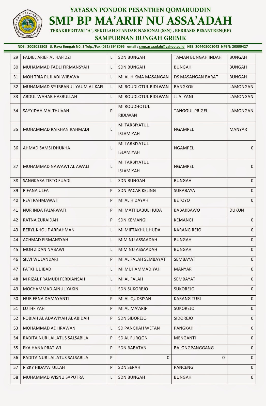 DAFTAR NAMA SISWA/I YANG DITERIMA TAHUN PELAJARAN 2015-2016
